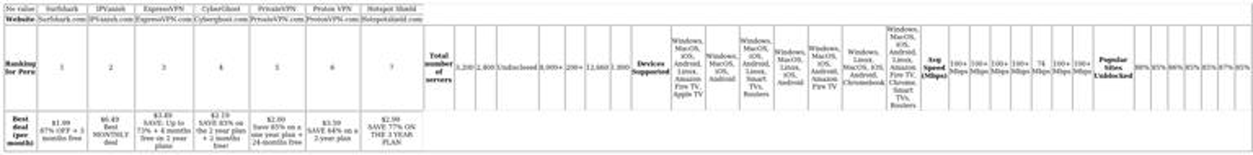 Limited Server Options: Most free VPNs don't offer servers in Peru.