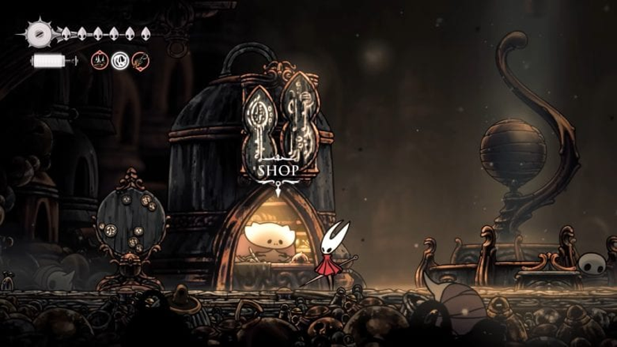 In Silksong begegnet man verschiedenen Händlern, die wertvolle Gegenstände für den Einstieg anbieten. Besonders hervorzuheben ist die Kartenhändlerin Shakra, die im Tal der Knochen ansässig ist.